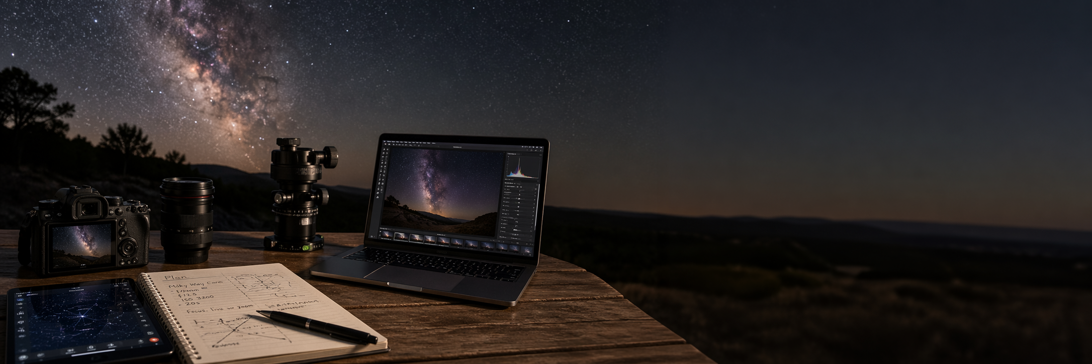 You’ll learn how to photograph the Milky Way, choose the right settings, work with moon phases, plan around dark skies, use star trackers, improve foregrounds, and edit your images more effectively. These tutorials are based on real-world experience in the field and are made to be clear, practical, and easy to follow.